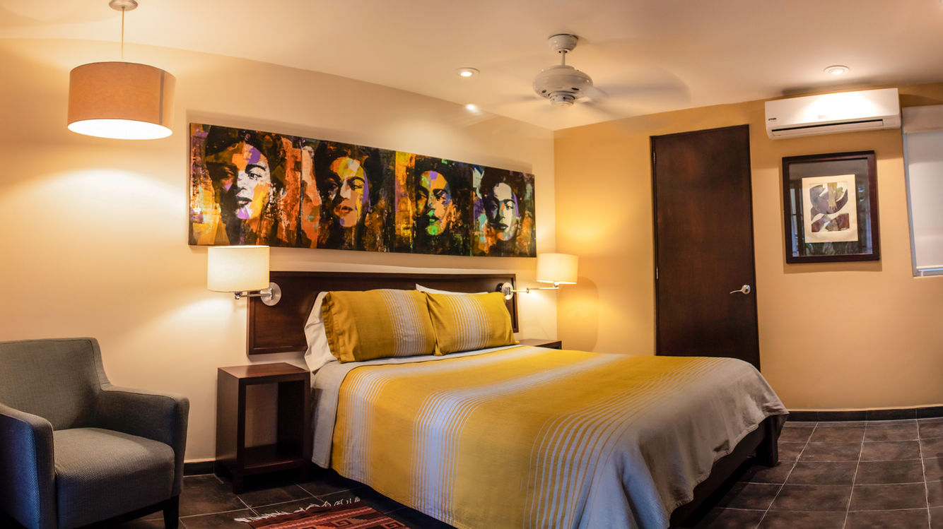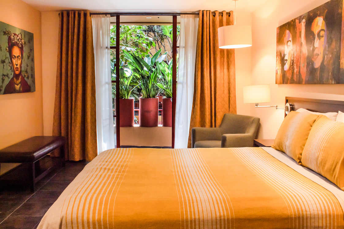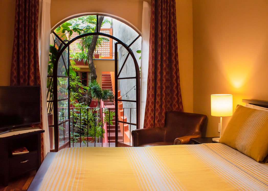 Each of our Standard Rooms have their own personality with unique artwork and furnishings. All face the interior courtyard and have either balconies or open out to the garden. The unique rooms range in size. Most are similar in scale to rooms in some of our favorite hotels in New York or San Francisco and are comfortable but not large. Bathrooms are tiled and have showers and TV.